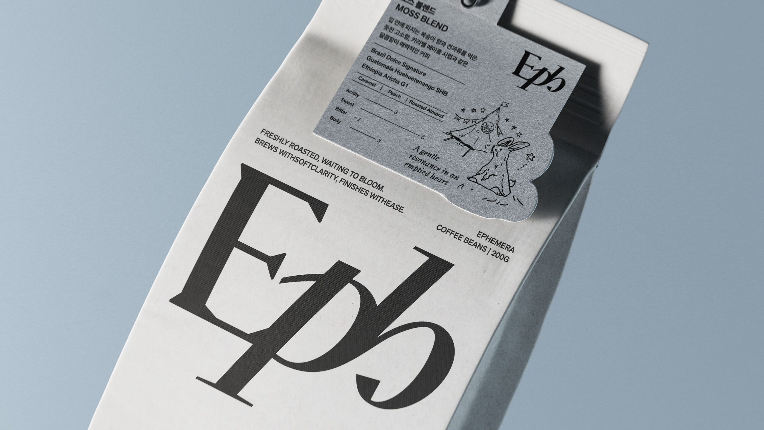 STUDIO OKGO는 성수의 랜드마크인 LCDC SEOUL 1층에 위치한 Café Ephemera를 리브랜딩하며 카페의 핵심 세계관인 ‘커피보이와 세 토끼 기사단’의 이야기를 하나의 통합된 비주얼 아이덴티티로 확장했습니다. ‘한 잔의 커피가 전하는 순간의 감정’이라는 철학은 일러스트 스타일 그래픽 모듈 컬러 시스템 등 모든 디자인 요소의 기반이 되었습니다. 패키지 원두 태그 사인 시스템 공간 디테일까지 전반에 걸쳐 세계관이 자연스럽게 이어지도록 설계해 Café Ephemera만의 몰입감 있는 브랜드 경험을 구축했습니다. 이 접근 방식은 카페를 단순한 커피 공간이 아니라 일상의 작은 순간들이 은은하게 흐르고 머무르며 필요한 사람에게 닿는 상징적인 세계로 확장시킵니다.