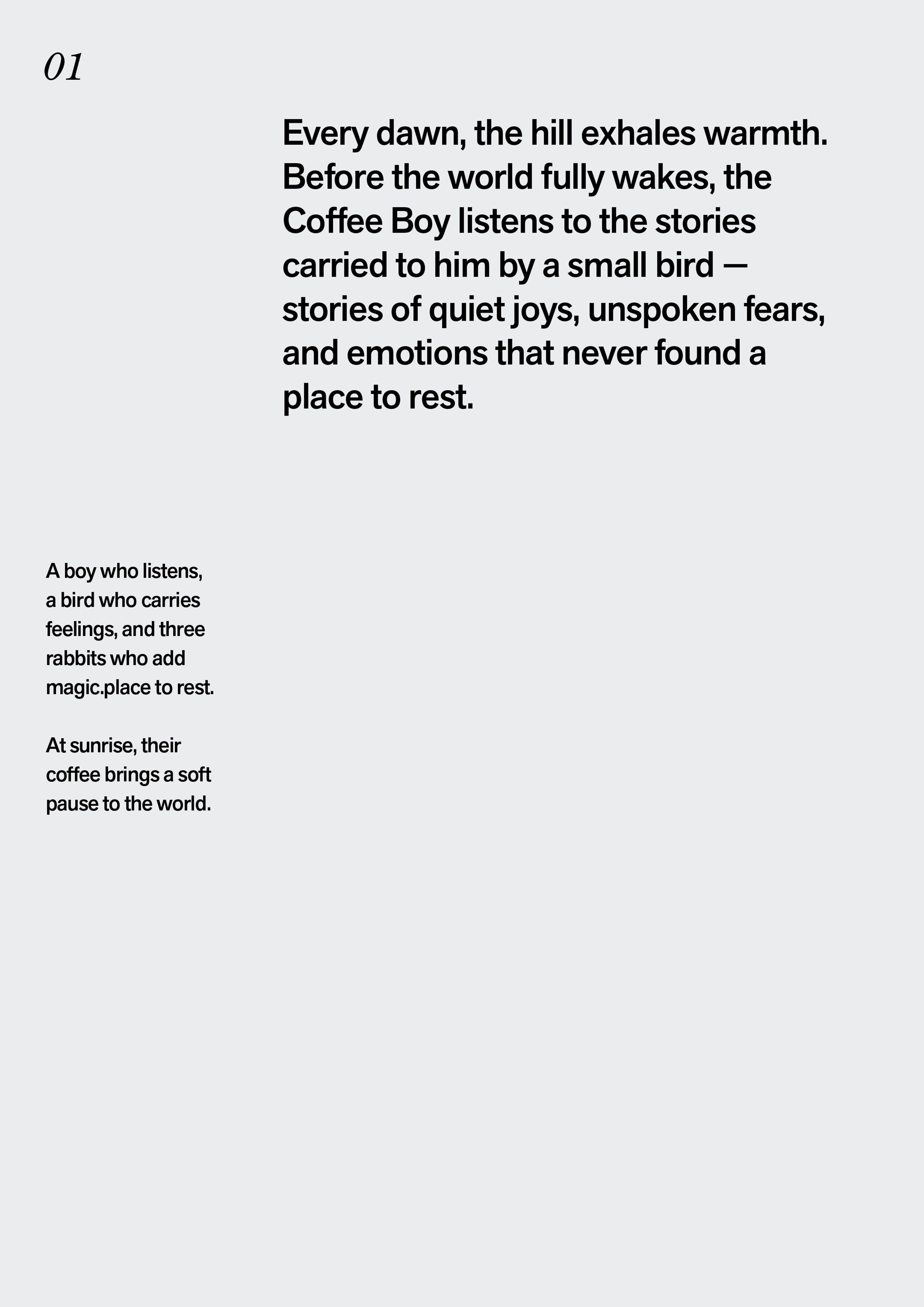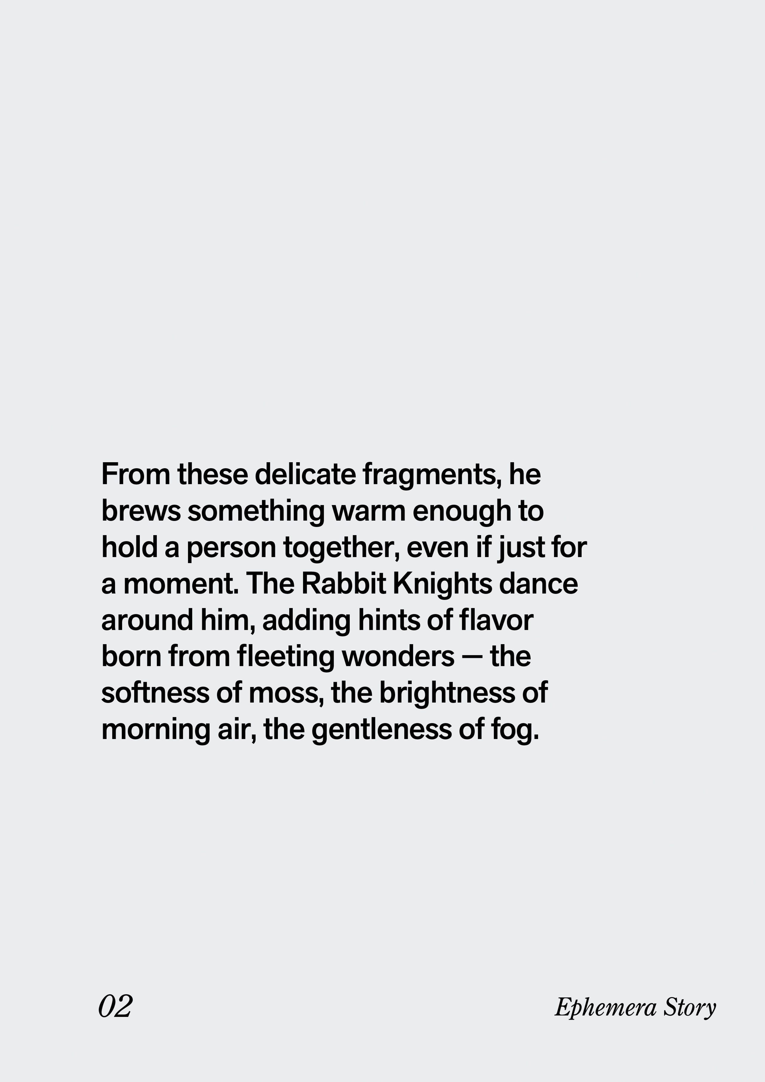 STUDIO OKGO rebranded Café Ephemera located on the first floor of LCDC SEOUL by expanding its core universe the story of Coffee Boy and the Three Rabbit Knights into a unified visual identity. This narrative grounded in the café’s philosophy of delivering fleeting emotions through a cup of coffee became the foundation for the illustration style graphic modules and color system. We designed packaging coffee bean tags signage and spatial details so the world-building extends across every touchpoint and creates an immersive brand experience unique to Café Ephemera. Through this approach the café moves beyond a simple coffee space and becomes a symbolic world where small and quiet moments flow linger and reach the people who need them.